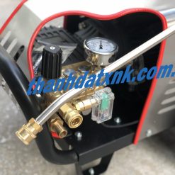 – Ấn vào cò đầu phun và bật vòi nước để xả không khí bên trong máy.